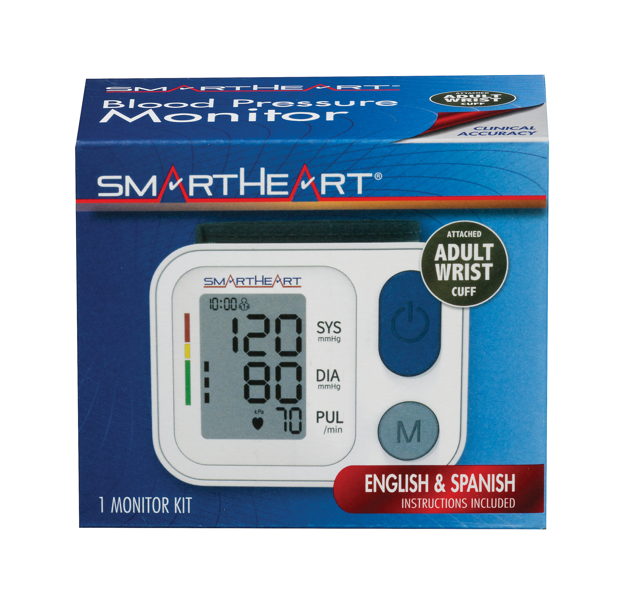 - Includes: Monitor with attached adult wrist cuff, 2 AAA batteries, detailed English/Spanish instructions, quick start guide, FAQ pamphlet and blood pressure charting log